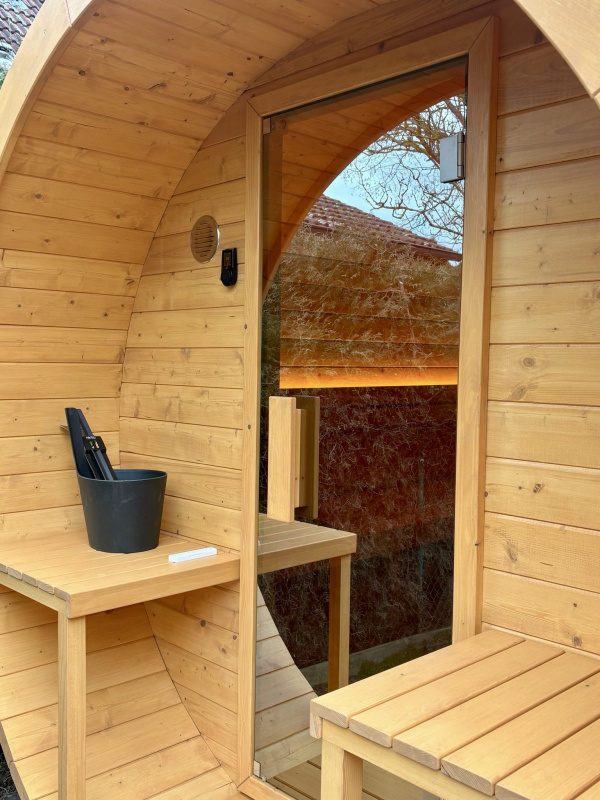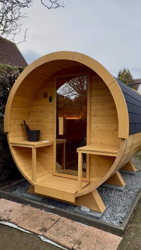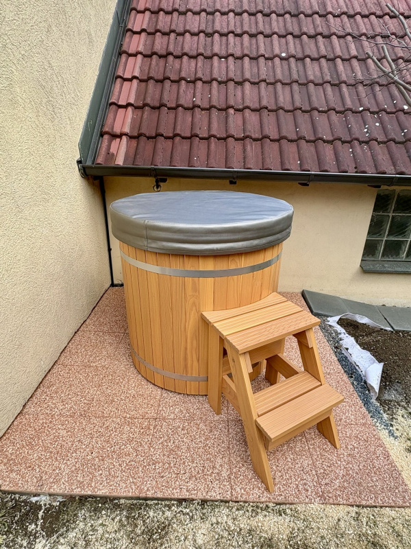 Protože bez ochlazování není správné saunování, tak součástí zakázky byl také ochlazovací sud, který jsme sladili do stejného odstínu jako samotnou sudovou saunu.