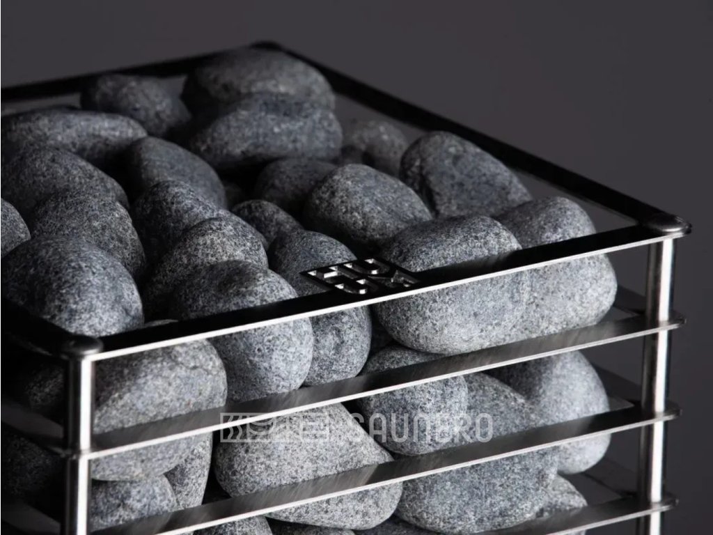 Do kamen se vejde až 75 kg saunových kamenů, které akumulují teplo a sálají jej rovnoměrně po celou dobu saunování. Výsledkem je jemná a příjemná pára, podobná zážitku z tradičních dřevem vytápěných saun. Malé bezpečnostní vzdálenosti od stěn umožňují jejich instalaci i v saunách, kde je omezený prostor.